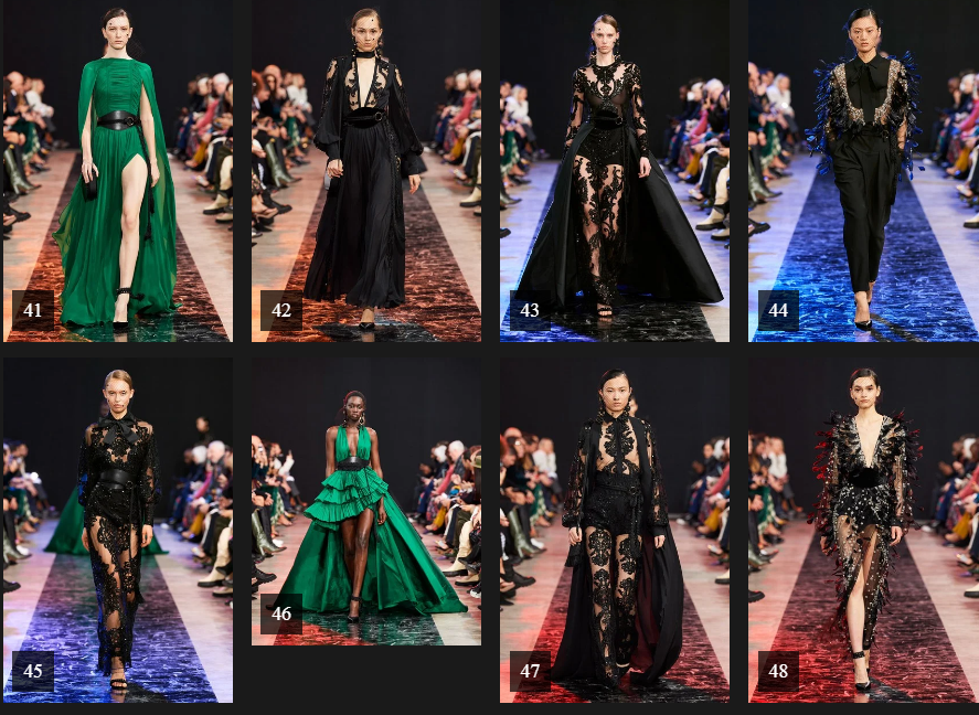 ومن بين العروض التي لفتت الأنظار، مجموعة المبدع "إيلي صعب" لخريف 2020، والذي دائمًا ما يُسلط التركيز على تصاميمه وجديده كل موسم.