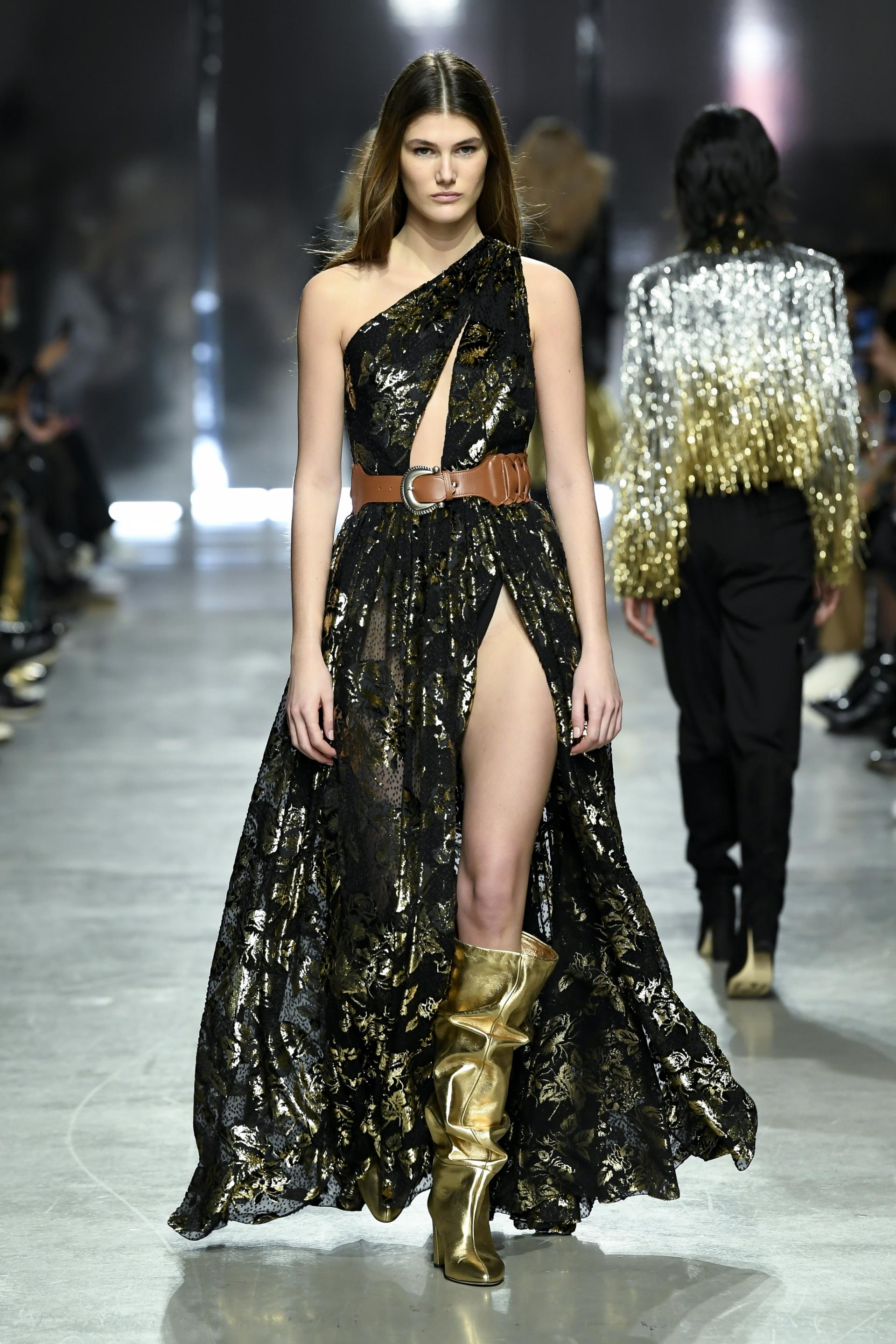 بريق لا حدود له يأتي مع الخامات باللمعة الذهبية والفضية المعدنية. هناك هالة من الذهبي الساطع تبرز على خامات اللامّيه بالكسرات الإنسيابية، وكريستالات فضية تزين خامات شبكية جذابة، كما تتراقص الأهداب والأقراص البراقة الصغيرة على حواشي التنانير والفساتين. وفي ظل كل ذلك اللمعان يبرز الأبيض والأسود بتناقضهما الجميل مع لمحات من الأحمر والفوشيا والتركواز والأصفر الشاحب والبني المائل للأحمر.