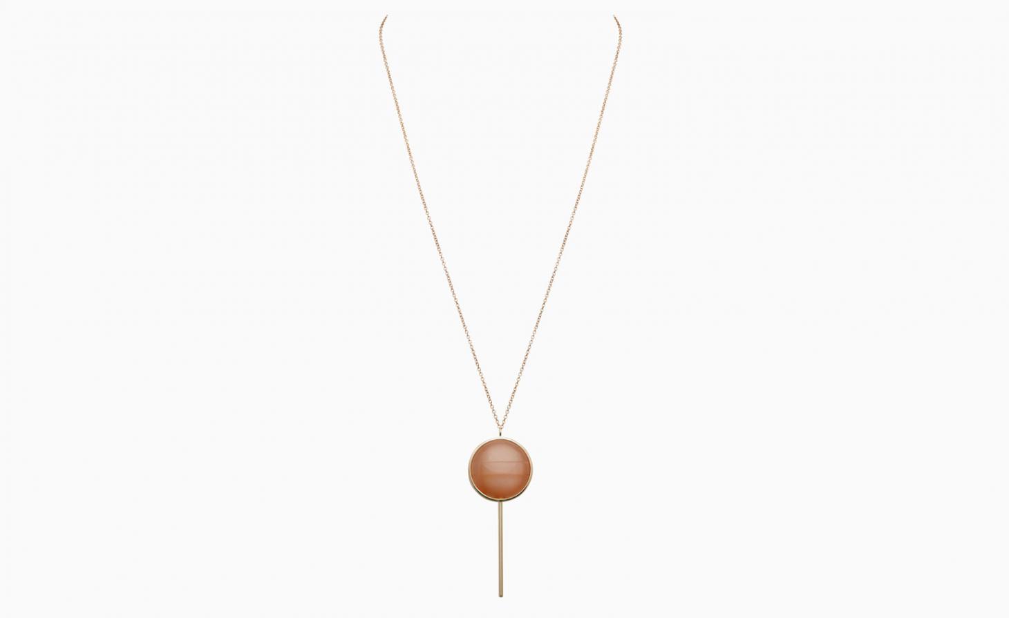 ومن القطع الجديدة في المجموعة قلادة المصاصة المصنوعة من الذهب الأصفر وحجر القمر البرتقالي.