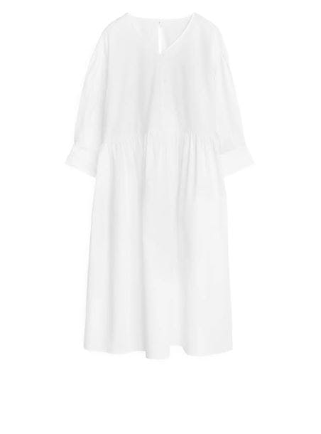 يمكنكِ ارتداء الفستان الأبيض الكلاسيكي من إتش أند إم أثناء العمل، ووجبات العشاء - الافتراضية-، ووجبة الفطور، وكل شيء بينهما.