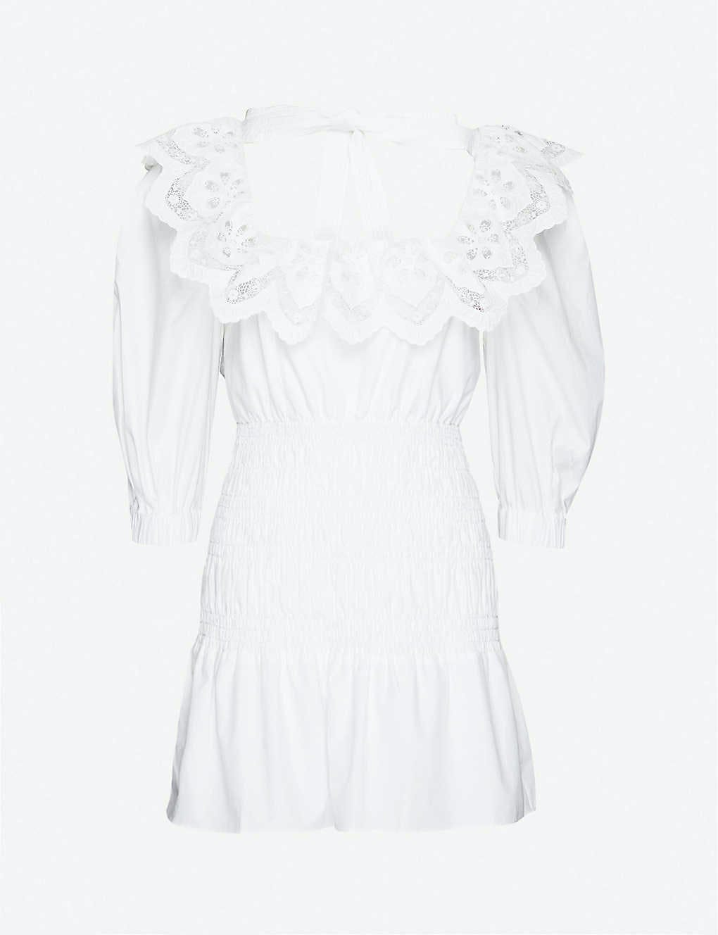 عادت موضة الياقات المكشكشة مرة أخرى لربيع و صيف 2020 ، ويعد فستان الياقة المزركش بالدانتيل من Self-Portrait طريقة بسيطة لاحتضان هذا الاتجاه.