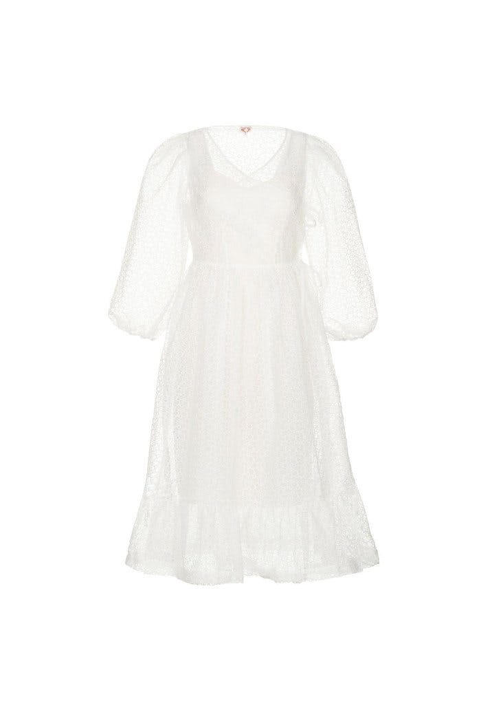 يعد التطريز هو نسيج صيفي مثالي، وفستان دوروثي بيركنز الميدي في هذا القماش اللطيف يجعلنا نشعر بأننا في الصيف بمجرد النظر إليه.