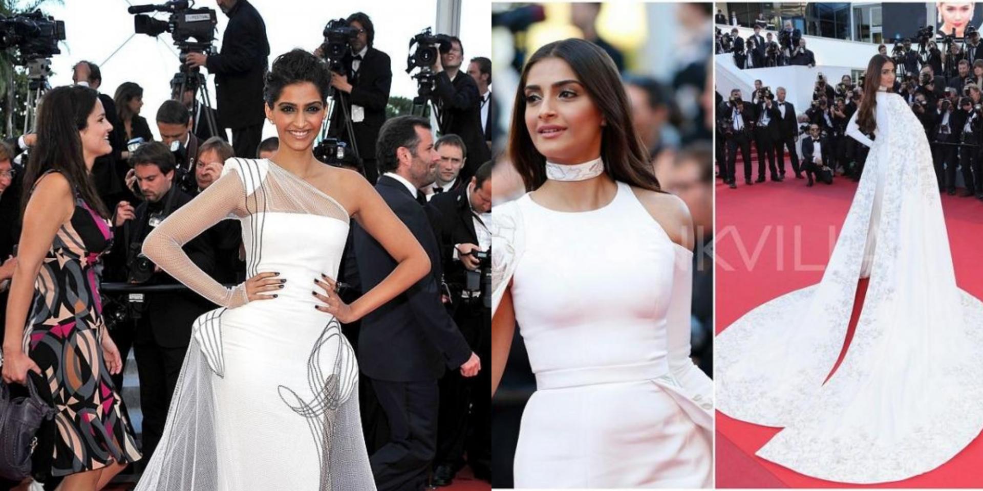 فقد ظهرت السيدة كابور مرتين علي السجادة الحمراء بمهرجان كان السنيمائي، واختارت سونام ثوبًا أبيض في المرتين، ورغم أن الإطلالة لم تكن رائعة إلا أنها ثارت إعجاب الكثيرون.وفي عام 2016، ظهرت سونام بفستان أبيض ناعم من رالف و روسو، وبدت في غاية النعومة.