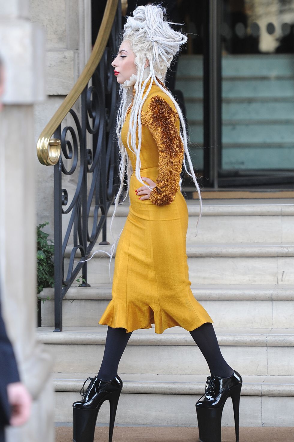 تظهر دائمًا ليدي جاجا بكل ما هو غريب ومثير للجدل ومنها الأحذية ذات الكعب العالِ العملاقة التي تكون مزعجة وغير مريحة أثناء المشي ومؤذية للظهر والساقين.