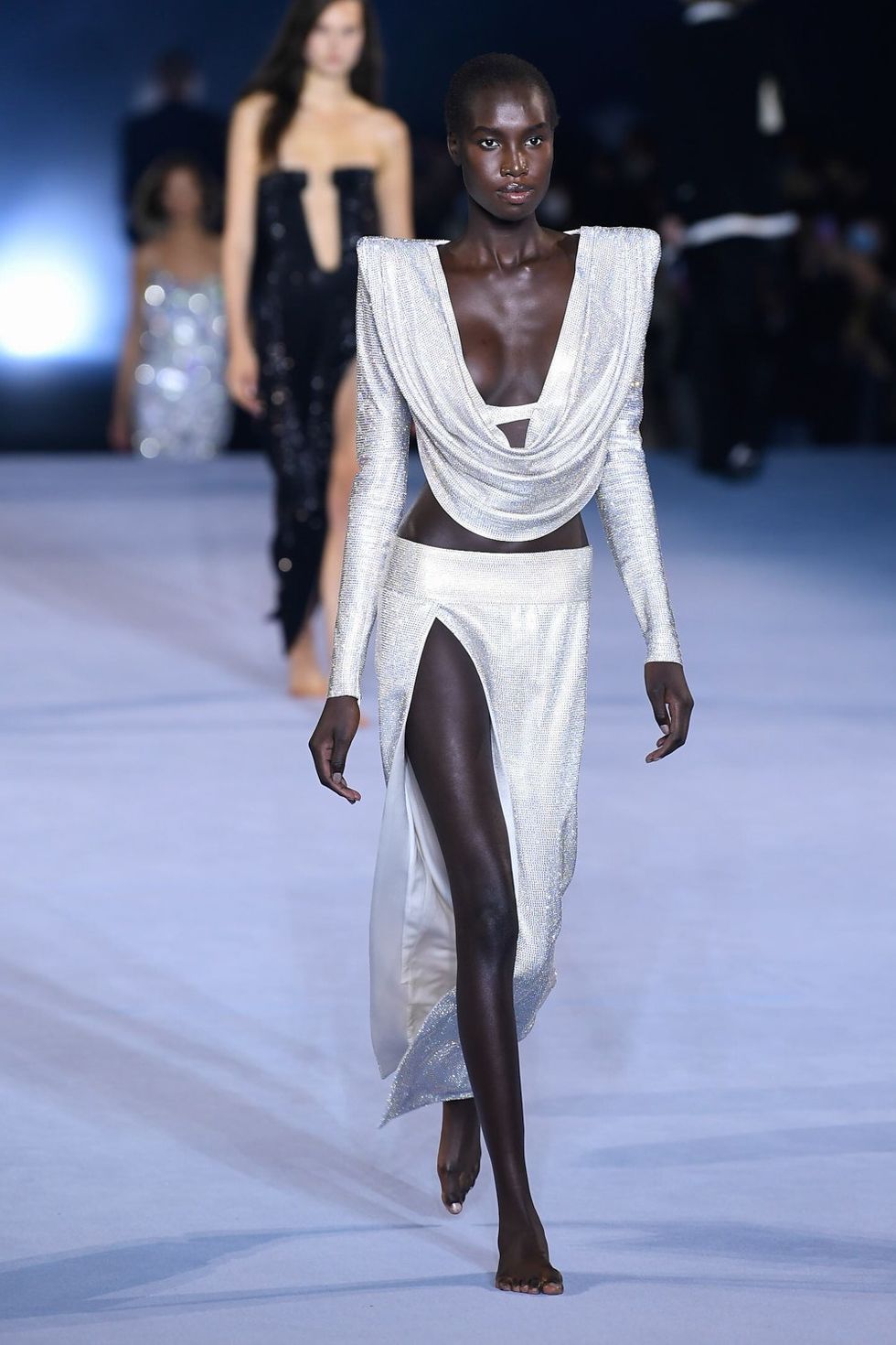 غلبت على دار ازياء بالمين الفرنسية طابع الحياة خارج الحظر المنزلي فنجد ألوان النيون واللون الأبيض البراق و الإطلالات الكلاسيكية وهذه هي أفضل خمس إطلالات ظهرت على مدرجة الموضة لدار الأزياء الفرنسية بالمين: