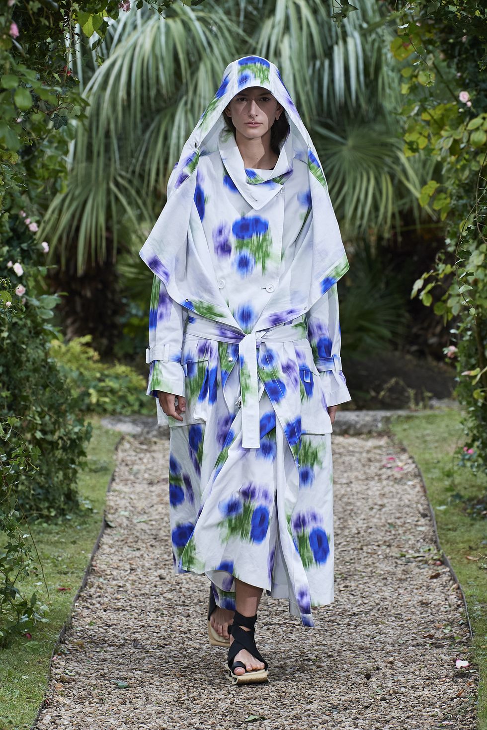 أظهرت العلامة التجارية كنزو طابع المنزل الفرنسي داخل فقاعة محكمة الإغلاق والذي عبر عنها بالقبعات والاغطية المنسدلة منها وكانت الفكرة المسيطرة على مجموعة كنزو ل ربيع العام القادم هو قضية التغير المناخي وتأثيرها حول العالم.