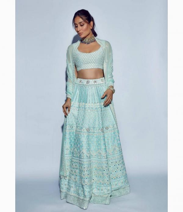 ظهرت نجمة بوليوود السيدة خان بسارى أزرق جليدى في أحد حفلات الزفاف ونسقت الجميلة افطلالة بشكل أنيق مع قلادو فخمة وميكاج ساحر، وظهرت السيدة خان مثل الأميرات.