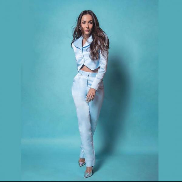 ارتدت مالايكا بدلة ستان باللون الأزرق الجليدى، ارتدت بنطالًا رسميًا من الساتان مع سترة قصيرة أيضاً من الساتان. وأكملت الإطلالة بشعر مموج ومكياج ترابي ساحر.