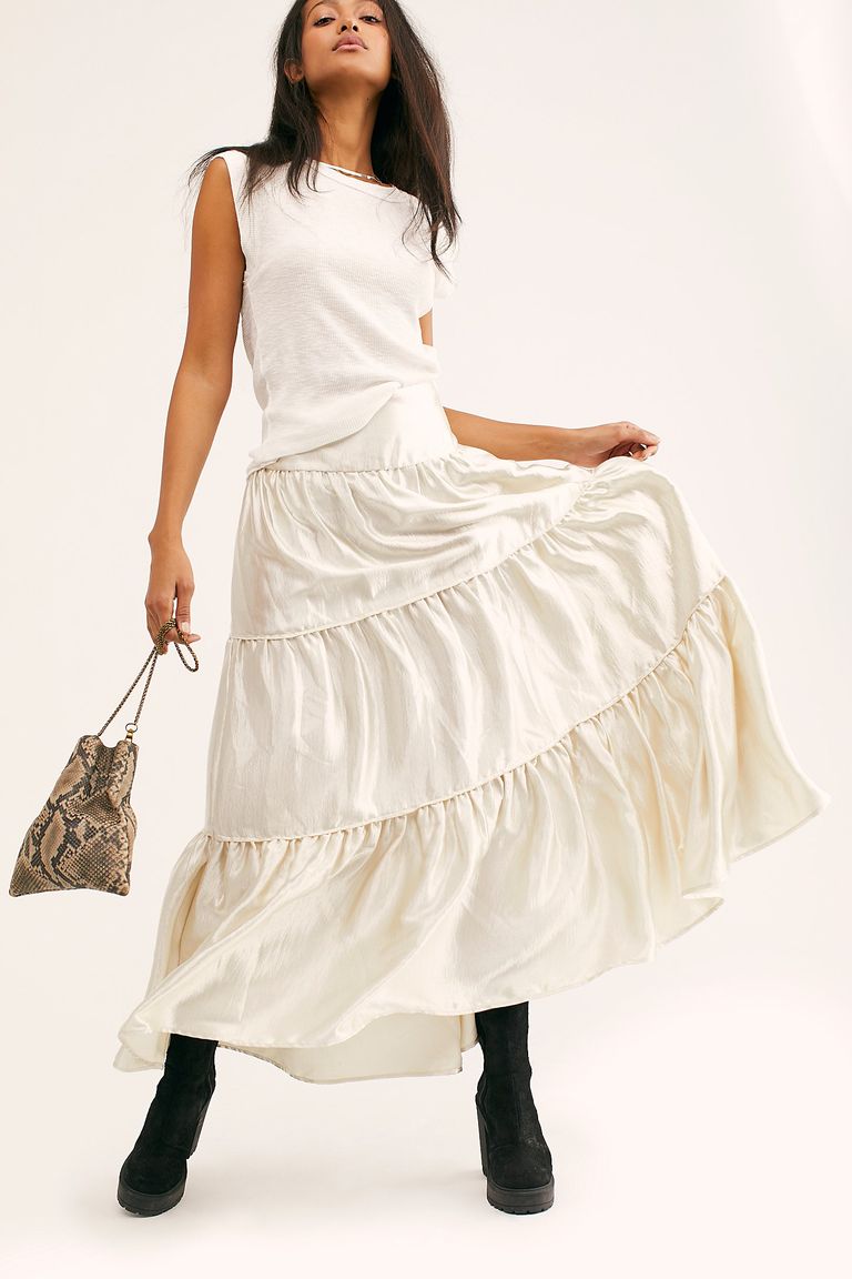 تعتبر موضة هذه التنورة دائمًة ومتجددة لا تبلى بمرور الوقت ويطلق عليها ايضًا اسم " التنورة الغجرية"، يمكنك إرتداؤها مع سترة من نفس شكلها ولونها ويمكنكِ إرتداء الصنادل ذات الأربطة أو زوج من البوت الأسود بالكعب العريض.