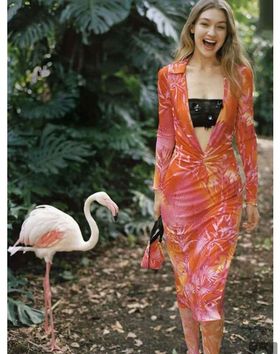 فقد اعتمدت عارضة الأزياء العالمة جيجي حديد خلال إجى عطلاتها علي فستان من فيرساتشي مطبوع بطبعات استوائية.