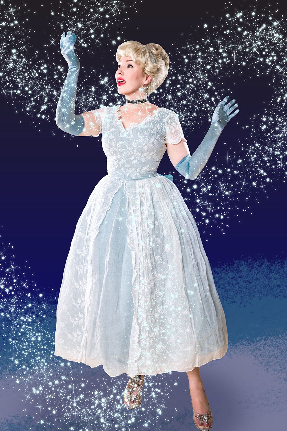 بالتأكيد لن يكون لديكِ نعال زجاجية أو عربة خيالية، لكن هذا لا يمنعكِ من عيش قصتك الخيالية!، فقط ارتدي فستانًا أزرقًا وبعض القفازات بطول المرفق و ستبدين رائعة مثل سندريلا.