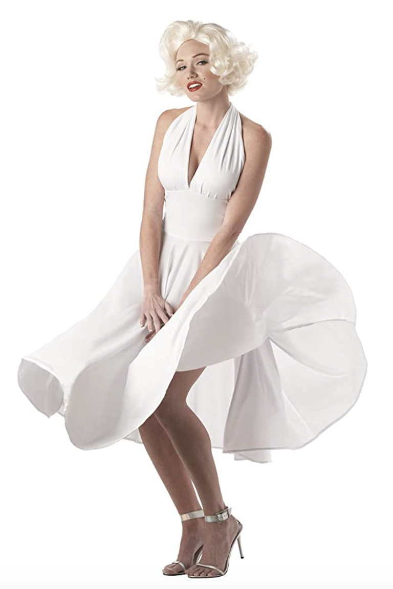 ظهرت النجمة مارلين مونرو بالعديد من الإطلالات الرائعة ويمكنكِ للاختيار من بينها، إلا أن أكثرها شهرة هو بالطبع فستانها الأبيض في فيلم The Seven Year Itch. ويمكنكِ ارتداؤه في احتفالات الهالوين واستمتعي باليوم المميز.