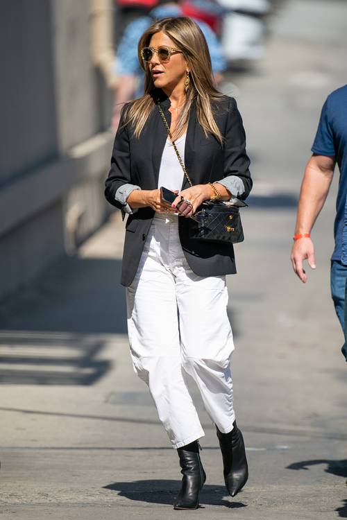 من الاحذية المفضلة لدى النجمات واللاتي ينتعلنها بشكل مستمر هي احذية الكاحل الانيقة والتي تتألق ايضًا بها نجمة هوليوود جينيفر انستون.