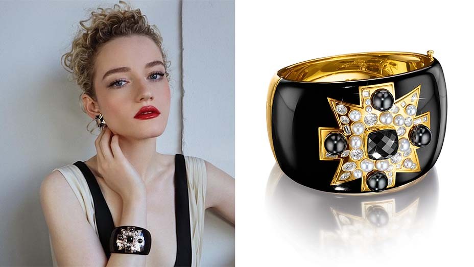 ارتدت الممثلة الأميركية جوليا غارنر سوار فولكو من مجموعة مجوهرات فيردورا وهو سوار فاخر مرصع بعدة قطع من الألماس الأبيض والماس البروليت الأسود واللؤلؤ الأبيض وايضاً اللؤلؤ التاهيتي الأسود و السوار مصنوع من الذهب و مطلي باللون الأسود.