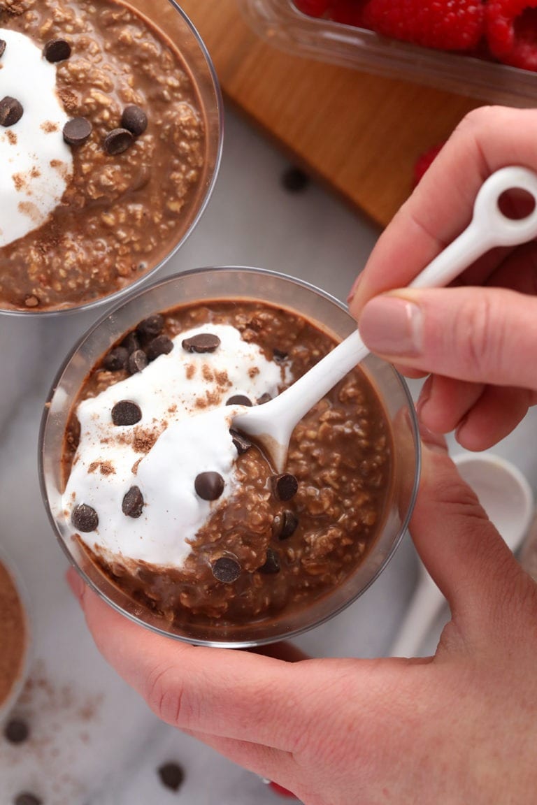 ابدأي يومك مع شوفان موكا اللذيذ والسريع! ما يميز هذه الوصفة هو أنها تستخدم شوفان سريع الطهي ، لذلك لا داعي لتركه طوال الليل - إذ سيكون جاهزاً في 15 دقيقة!