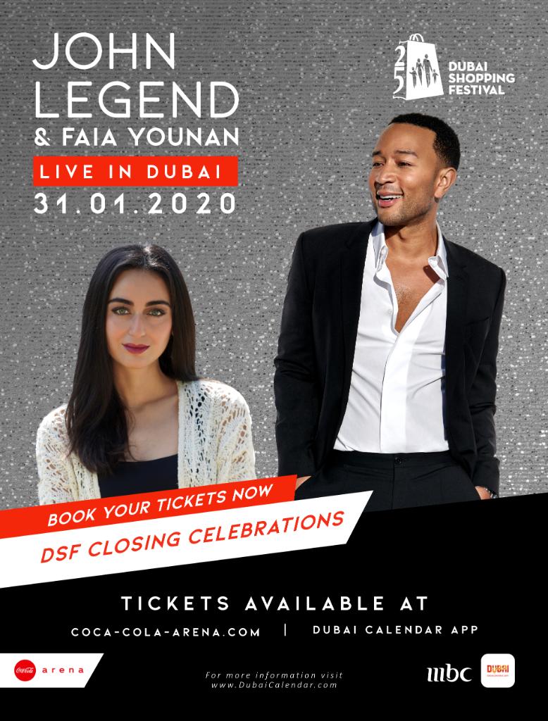 "جون ليجند" وفايا يونان" في الاحتفالات الختامية لمهرجان دبي للتسوق