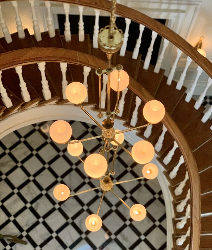 وبالإضافة إلى المدافئ التي تبدو واقعية للغاية، صُنعت أرضية مدخل المنزل من أكثر من 2000 بلاطة رخامية موضوعة بشكل فردي ومثبتة بالجص التقليدي، كما يشتمل التصميم ثريا مزخرفة على الطراز الفيكتوري مكونة من مستويين من النحاس الأصفر مع كرات من الأكريليك الأبيض اللبني، والتي تشع ضوءاً أصفر ناعمًا في المكتبة كما تفعل العديد من الشمعدانات المنسقة التي تحيط بمداخل الطابق الثاني.