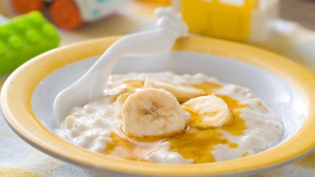 3- أطفئي النار. ضعي مزيج الشوفان في وعاء. اضيفي حبّة الموز.