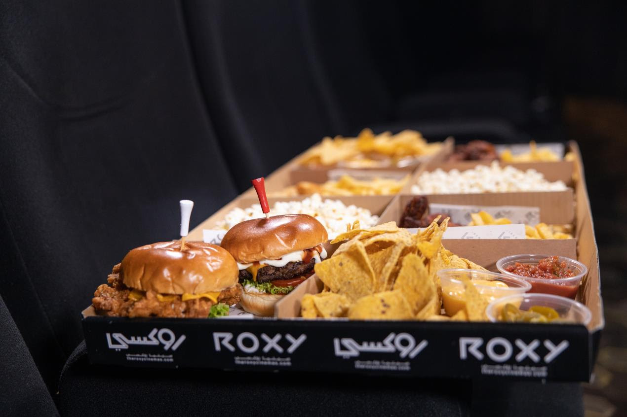 ويمكن للضيوف تخصيص تجربتهم، واختيار النكهات المفضة وإشباع شهيتهم مع عدد غير محدود من المأكولات المفضلة في السينما! وتدعو روكسي سينما زبائنها للاستمتاع بتناول هوت دوج الدجاج واللحم البقري اللذيذ والبرغر، أو تجربة أجنحة الدجاج اللذيذة والفشار. بالإضافة إلى ذلك، يمكن الحصول على الخيار المفضل من المشروبات الغازية أو المياه.