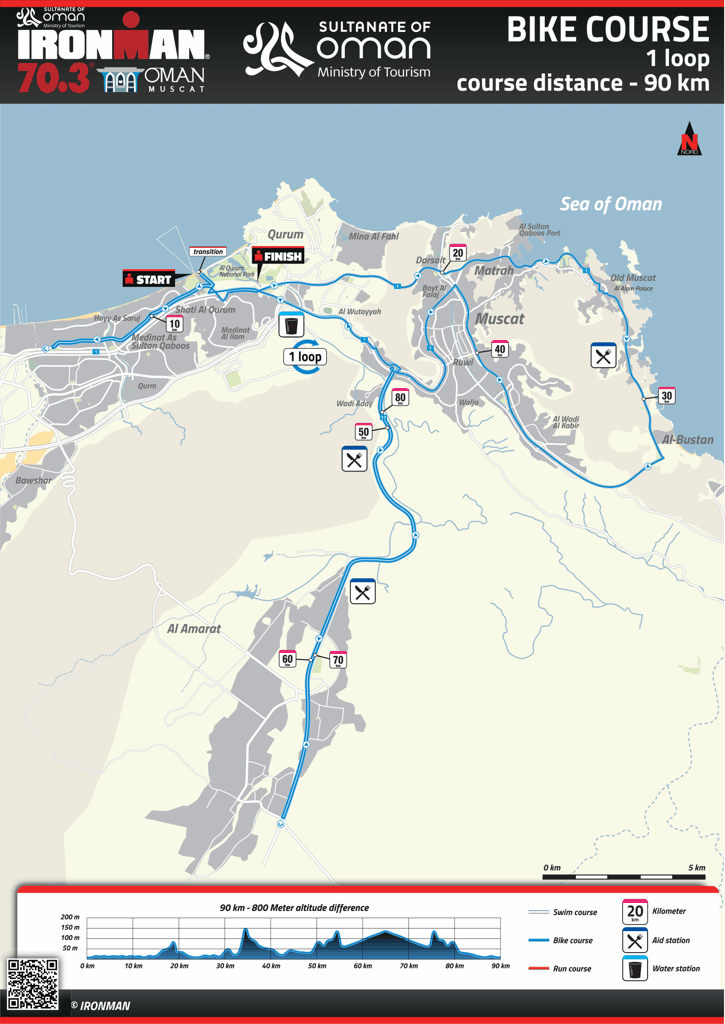 وستتضمن فعاليات سباق الرجل الحديدي السباحة لمسافة 1.9 كيلومترًا وركوب الدراجات الهوائية لمسافة 90.1 كيلومترًا والعدو لمسافة 21.1 كيلومترًا، حيث سيتمكن المتسابقين أثناء مشاركتهم في السباق من التعرف على أبرز المعالم السياحية للعاصمة العُمانية والاستمتاع بأجواء بحر عُمان الخلابة على حدود الشاطئ بمسقط، وسيتأهل الفائزين في السباق إلى بطولة الرجل الحديدي العالمية التي ستقام في مدينة تاوبوي، نيوزيلندا.