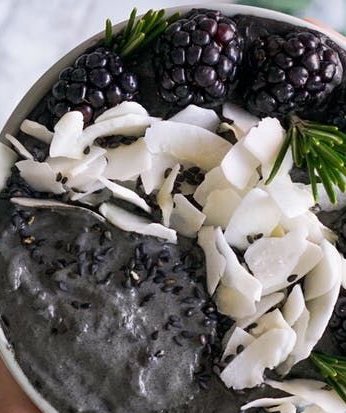 اسكبي المزيج في وعاء وزينيه بالتوت الأسود ورقائق جوز الهند وبذور السمسم والزعتر.