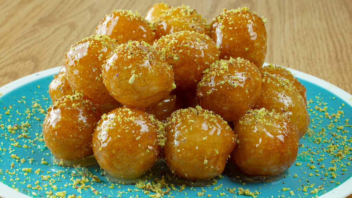 - نخرجها من الزيت ثم نضعها في القطر البارد حتى تتشرب كمية مناسبة منه.