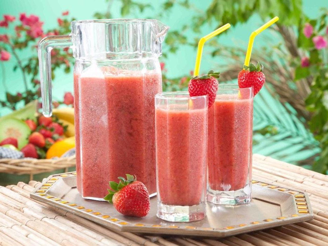 2. تقطع الفراولة وتضاف إلى الموز في الخلاط.
