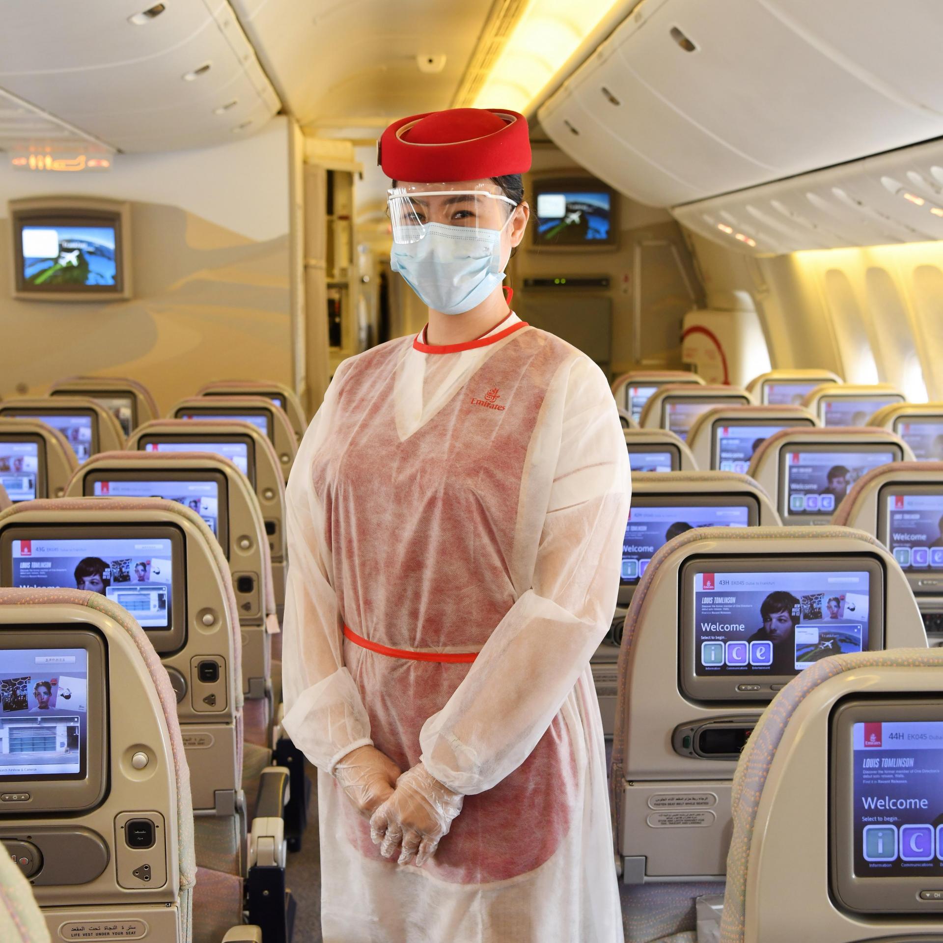 الصحة والسلامة أولاً: تطبق طيران الإمارات مجموعة شاملة من الإجراءات في كل خطوة من رحلة المسافر لضمان سلامة عملائها وموظفيها على الأرض وفي الأجواء، بما في ذلك توزيع علبة مستلزمات الوقاية والنظافة على جميع المسافرين مجاناً. وتحتوي العلبة على أقنعة وقفازات ومعقم لليدين ومناديل مضادة للبكتيريا. معلومات حول الإجراءات والخدمات على كل رحلة، متوفرة على الموقع www.emirates.com/yoursafety