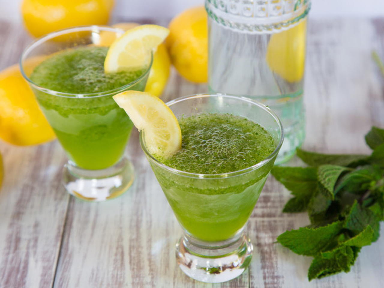 1- قطّعي الليمون الحامض إلى قطع صغيرة وضعيه داخل الخلاط مع النعناع والملح والماء.