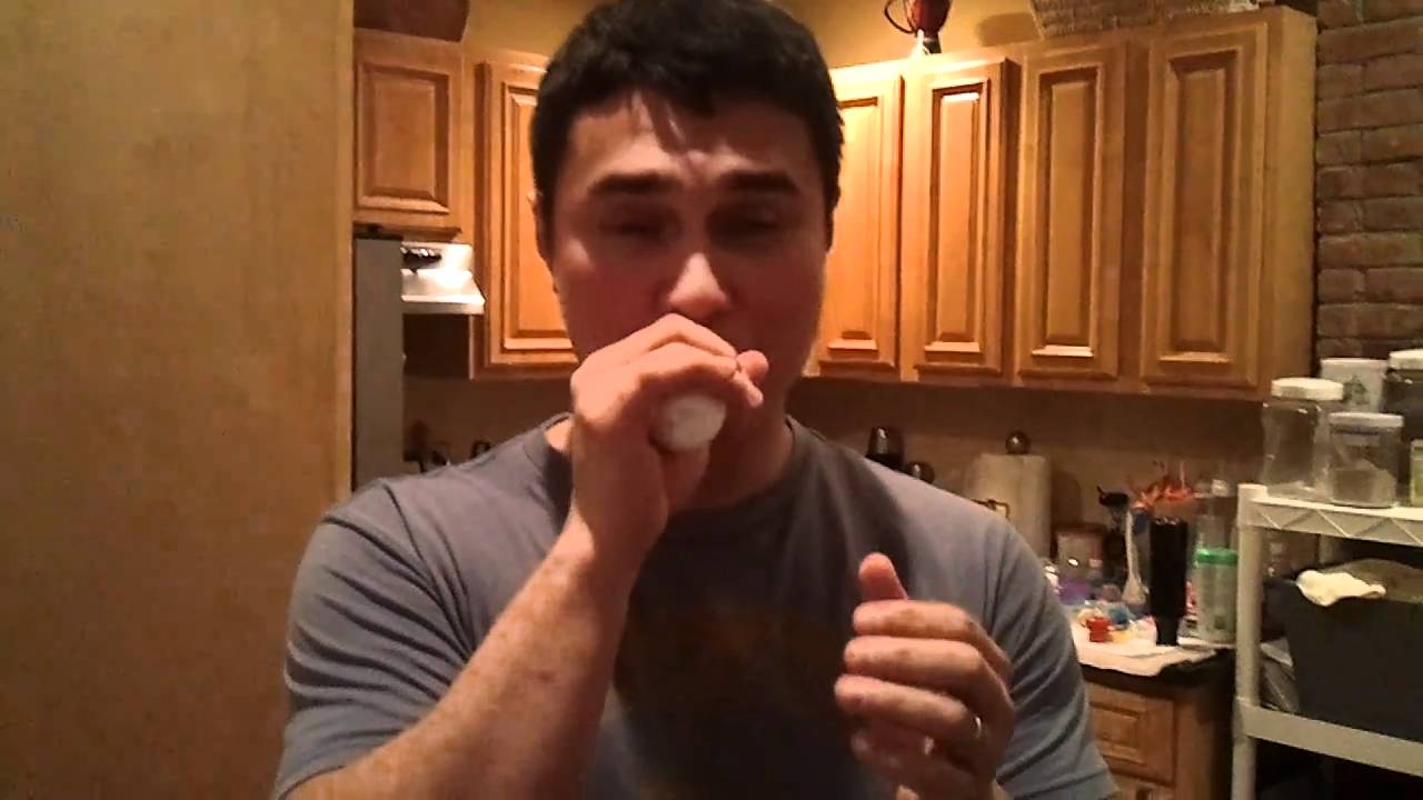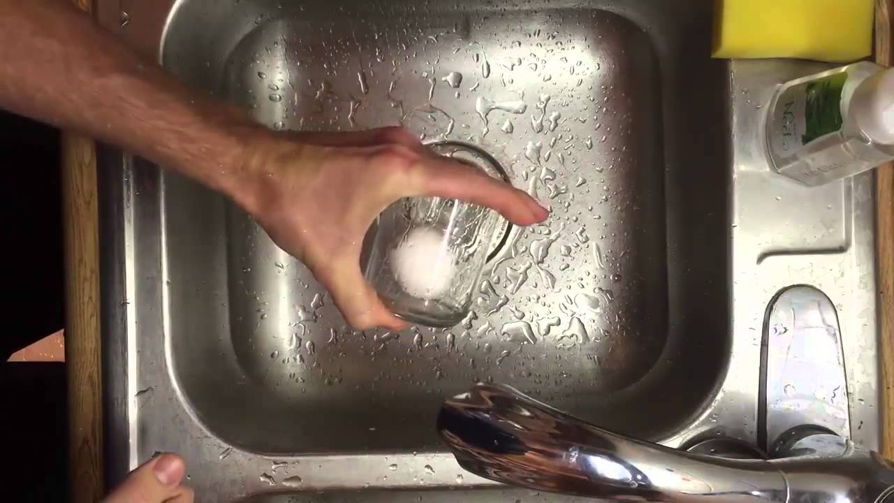 1. إملأي كوب زجاجي أو وعاء بلاستيكي بالقليل من الماء وضعي داخله الببضة المسلوقة. أغلقي الفتحة بإحكام مستخدمة يديك أو غطاء ورجّي بقوة حتى تتخلّصي من القشر تمامًا.