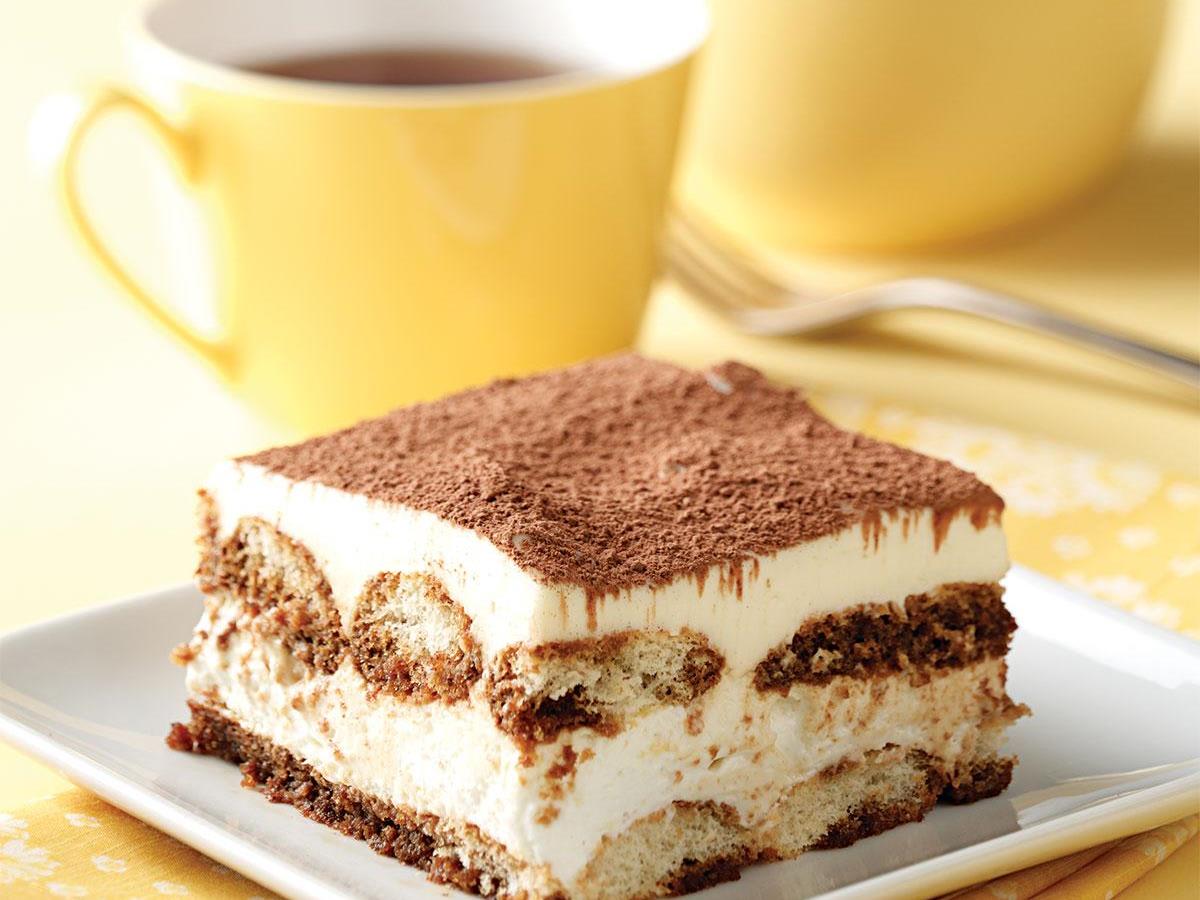 11- ضعي الطبقة الأولى من الكيك على طبق التقديم واسقيه بمزيج القهوة ثمّ وزّعي ثلث كمية الكريمة على وجهه.