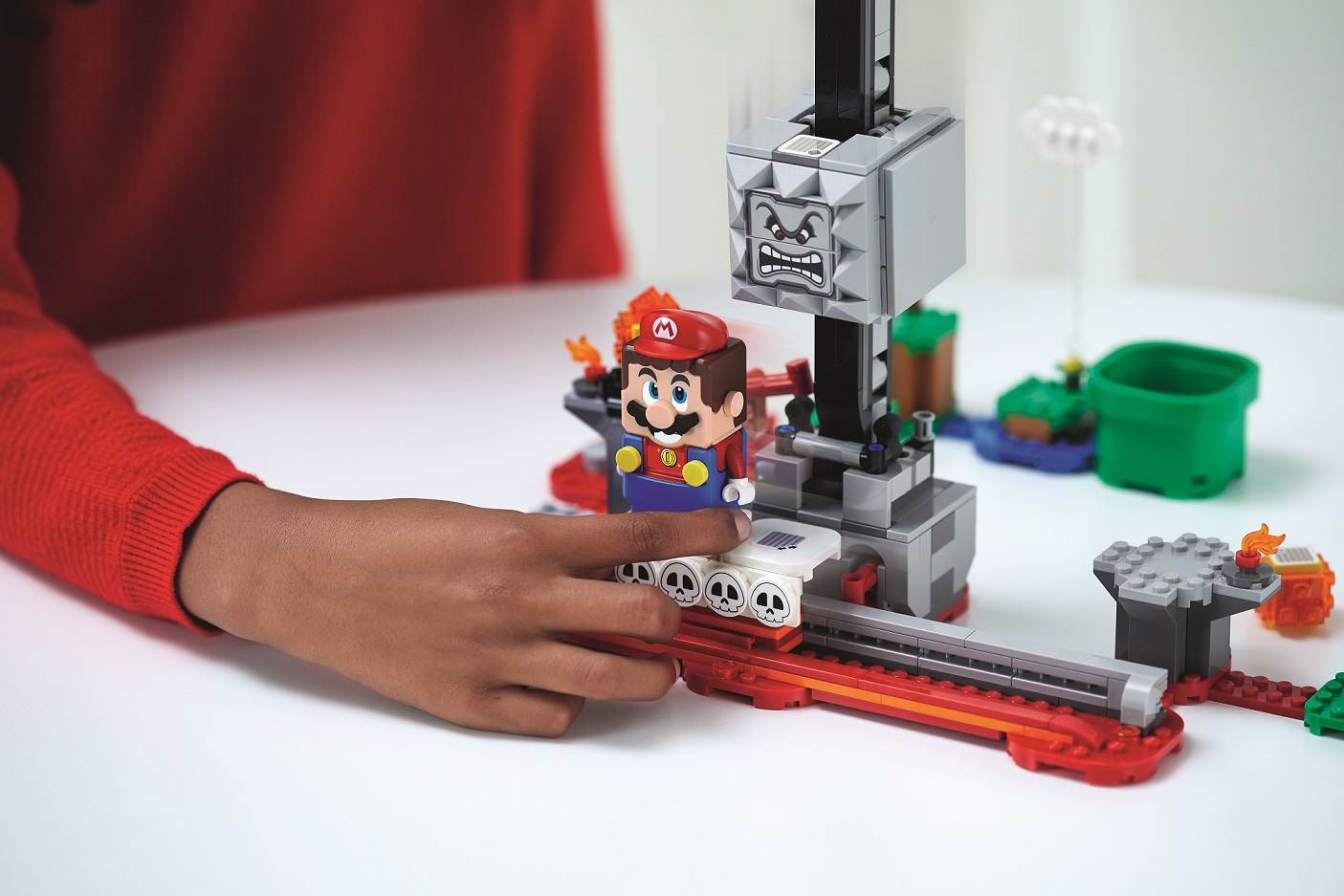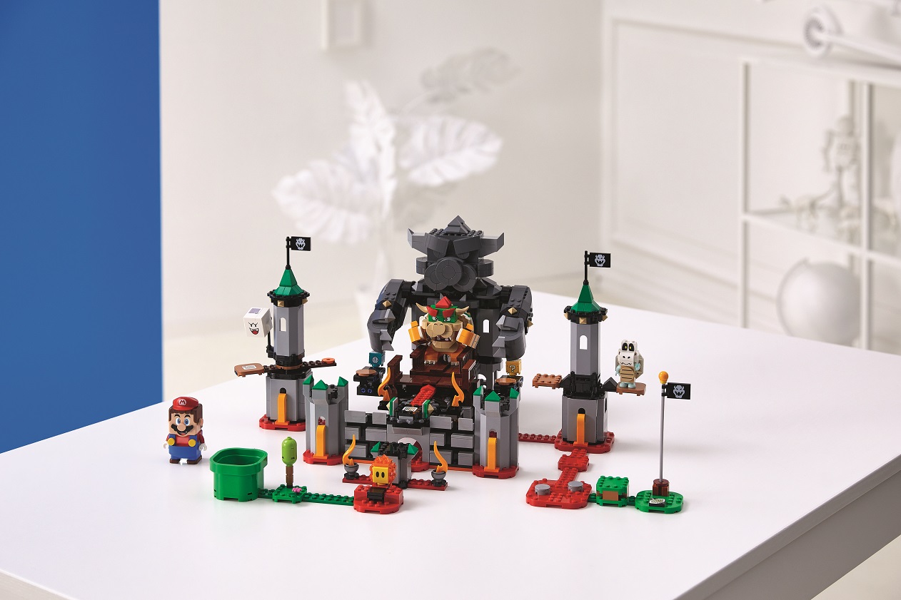 وتتضمن جميع المجموعات سلسلة من التحديات والشخصيات الفريدة التي يمكن لهواة ليغو اللعب بها بمفردهم أو مع الأصدقاء. بالإضافة إلى مجموعتي Piranha Plant Power Slide وBosser's Castle Boss اللتين تم الإعلان عنهما في أبريل، تتضمن المجموعات التكميلية الأخرى Guarded Fortress وMario’s House & Yoshi و Toad’s Treasure Hunt و Desert Pokey وWhomp’s Lava Trouble ومجموعة Boomer Bill Barrage.