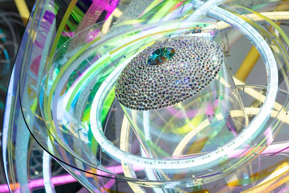 العمل الذي صممته الفنانة الضوئية من برلين سوسان روتنباخر تم صنعه باستخدام ثمانمائة ألف حبة كريستال لخلق تعايش مثالي بين الكريستال وانكسار الضوء.