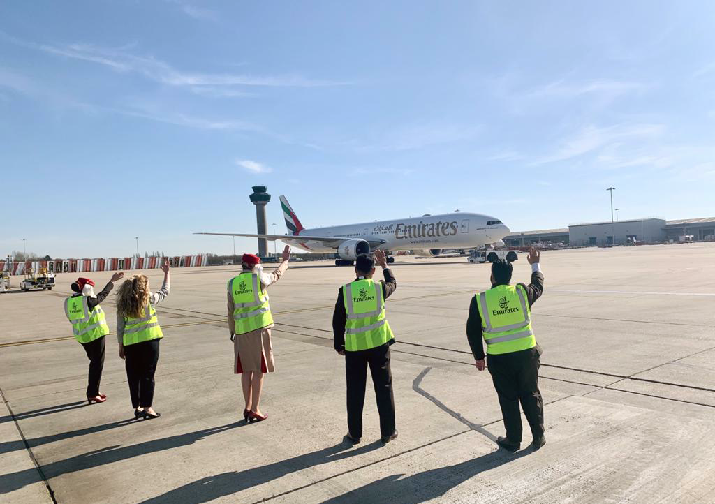 لّوح موظفو طيران الإمارات في مختلف المطارات العالمية، بأيديهم لطائرات الناقلة العائدة إلى دبي قبيل بدء سريان تعليق الرحلات مؤقتاً، على أمل اللقاء مجدداً واستئناف العمليات في وقت قريب. وكانت آخر رحلة مغادرة "ئي كيه 5" إلى لندن هيثرو قد انطلقت من مطار دبي الدولي في الساعة 4:05 عصر يوم 24 مارس، في حين كانت آخر رحلة قادمة "ئي كيه 262" التي وصلت إلى دبي من ساو باولو الساعة 22:35 ليلاً يوم 25 مارس الجاري.