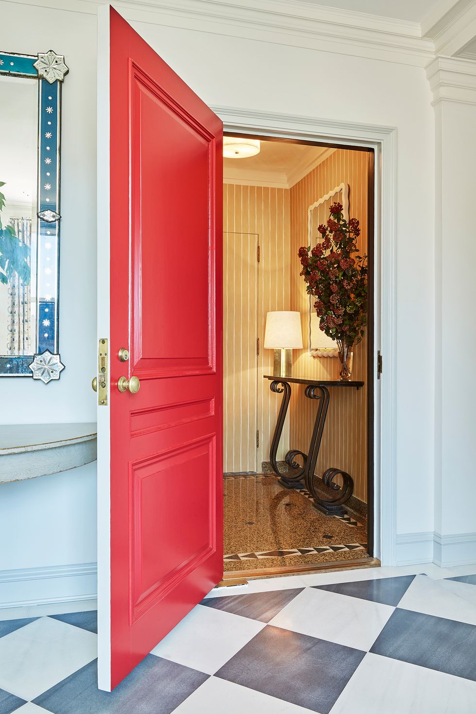 اللون الأحمر الساطع هو أحد الألوان المفضلة هذا الصيف، ويمكن وضع لمسة مشرقة من اللون الأحمر في حائط فقط أو أحدى الأبواب؛ فهو لون نشط وممتع وأنيق.