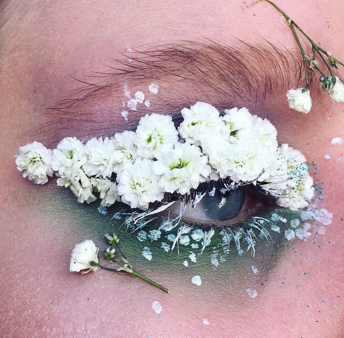 ظهر اتجاه جديد لمكياج العيون وهو رسم الورود والأزهار على الجفون وحول منطقة العين بشكل يظهرها وكأنها حديقة جميلة.