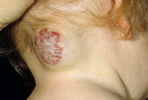 يتلاشى بعضها مع نمو الطفل ، ولكن عادة لا تختفي البقع الموجودة على مؤخرة العنق. وتحدث هذه الحالة لثلثي الأطفال حديثي الولادة. ولا تتطلب أي علاج.