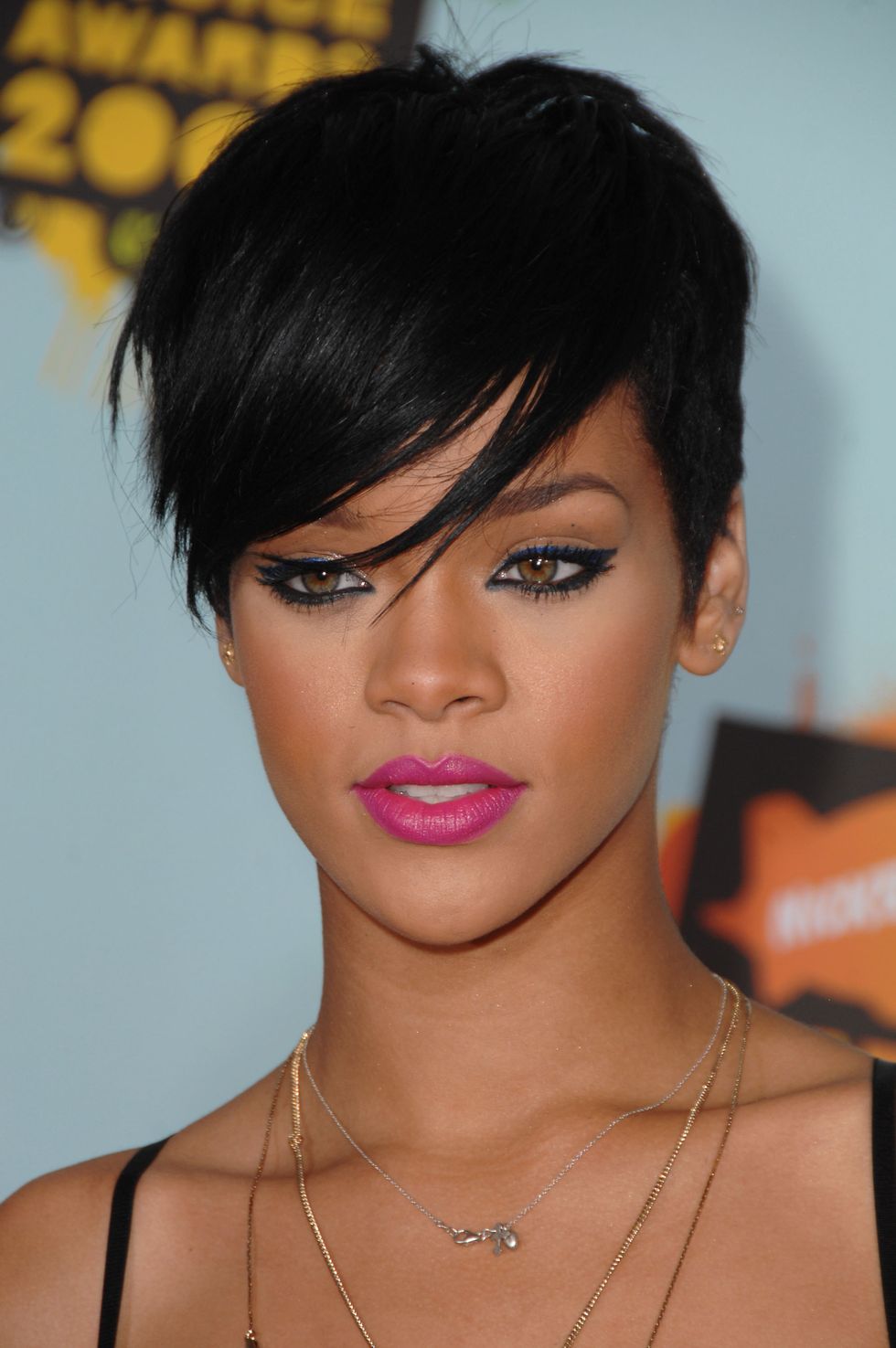 بدت ريهانا رائعة الجمال في تسريحة البيكسي القصيرة وما اضفى أناقة على هذه التسريحة هو لون شعرها الأسود الداكن.