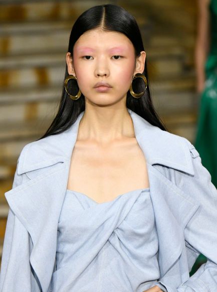 من اتجاهات المكياج التي روج لها اسبوع الموضة النيويوركي هو استخدام حمرة الخدود ولكن هذه المرة اعلى الجفون للحصول على مظهر أنثوي ورومانسي.