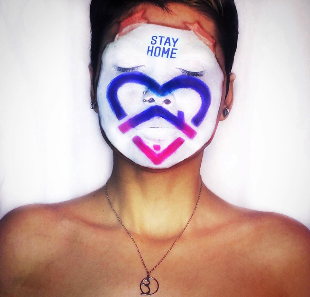صنعت خبيرة المكياج غزل ناز المعروفة على إنستجرام باسم lady_forutan، مكياج الوجه الكامل، والذي استوحته من أيقونة "انستجرام" ذات الألوان المتعددة كمصدر إلهام لها، ورسمت على وجهها كلمة ""Stay Home.