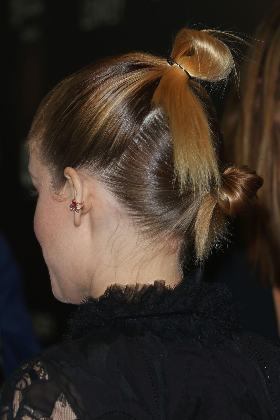 تعتبر عقدة المنتجة كيت مارا المقسمة لاثنين تسريحة مفضلة لذوات الشعر الناعم، ويمكنك تطبيقها أيضًا لابنتك.