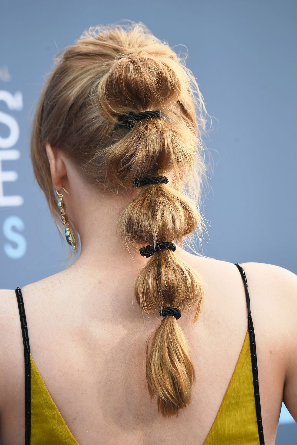 قومي برفع شعرك للاعلى، ثم قسميه للعديد من العقد بواسطة الأشرطة الصغيرة ، وستعطيكي تسريحة عصرية وجميلة.