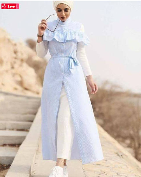 يطغي هذا التصميم على موضة المحجبات لربيع هذا العام، وبجانب ما يضفيه من راحة، يتميز هذا التصميم بالجمع بين لمسة القميص الكلاسيكي والفستان في آن واحد.