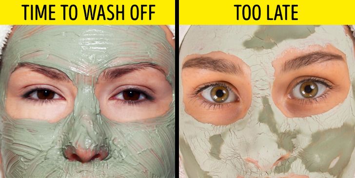لا يجب ترك اقنعة الوجه طوال الليل او لفترات طويلة او حتى تجف بشكل كبير فهذا يؤدي للإصابة بمشكلات جلدية خطيرة بسبب امتصاص الماسك لنسبة الرطوبة من البشرة مما يسبب جفافها وخاصة قناع الطين يجب إزالته وهو رطب وليس عند الجفاف الشديد.