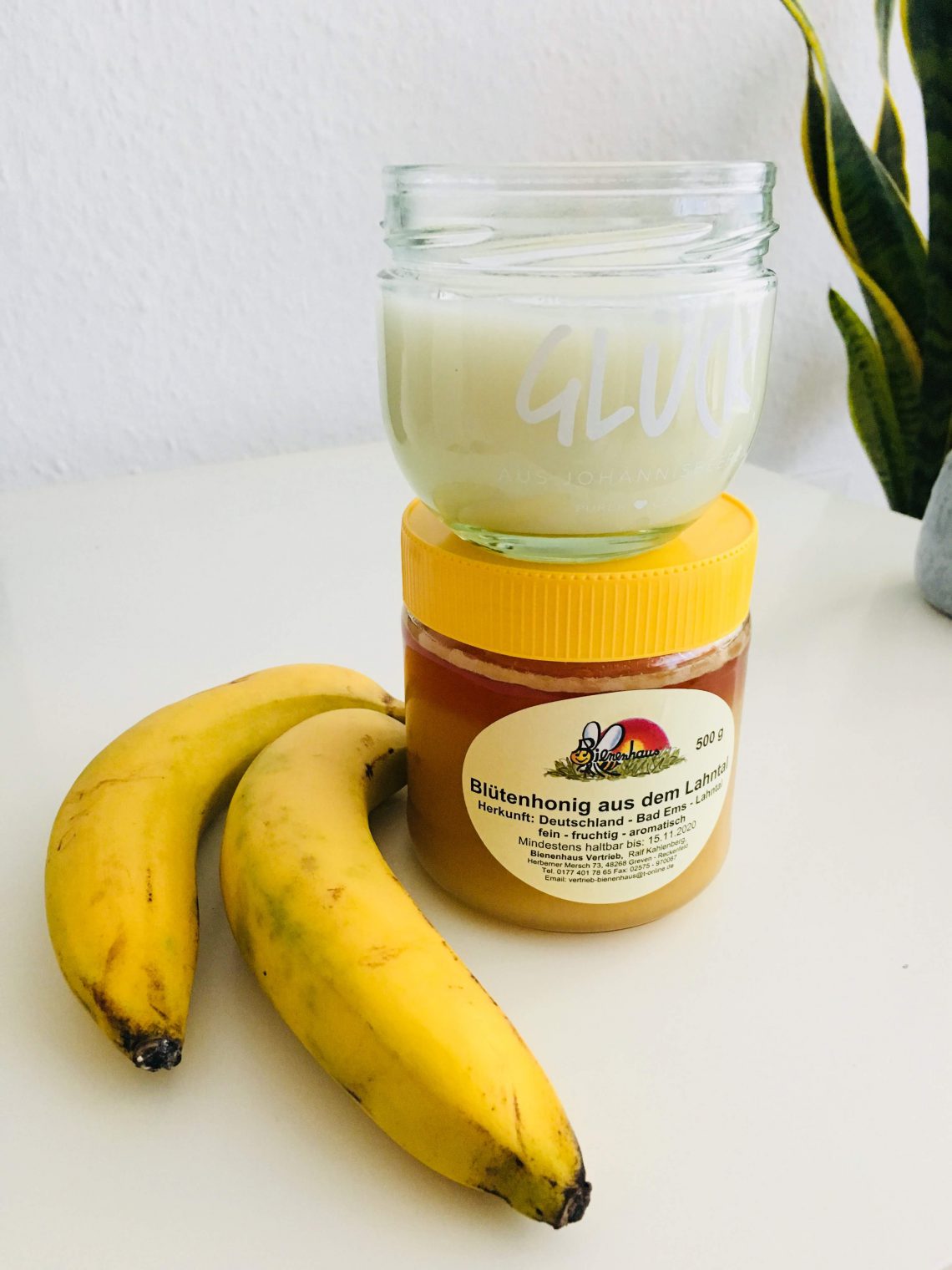 - نهرسُ حبّة الموز جيّدًا، ونضيفُ العسل إليها ونخلطُ المزيج جيّدًا.