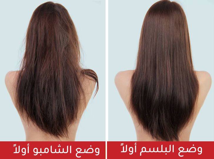 لقد اعتدنا على غسل الشعر بالشامبو أولاً ثم إضافة بلسم الشعر،. لكن الروتين العكسي يعمل بشكل أفضل لبعض أنواع الشعر. تطبيق البلسم أولاً سيجعل شعرك يبدو أكثر كثافة.