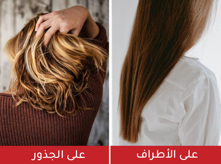 إذا كنت تضعين الشامبو على الجذور ثم تضيفين المزيد إلى باقي شعرك، فقد تتسببين في إتلاف الأطراف. غالبًا ما تكون الجذور هي الأكثر دهنية، ويجب وضع الشامبو على فروة الرأس بدلاً من الأطراف. إذ عادة ما تكون النهايات أكثر جفافًا، وغسلها بالشامبو سيجعلها تبدو أسوء مما تبدو عليه.
