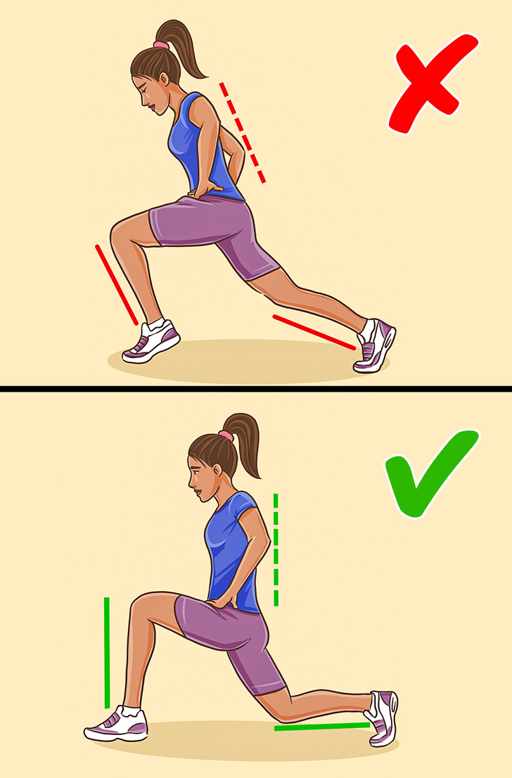 - عند التقدم للأمام، تأكد من أن ساقك تصنع زاوية 90 درجة.