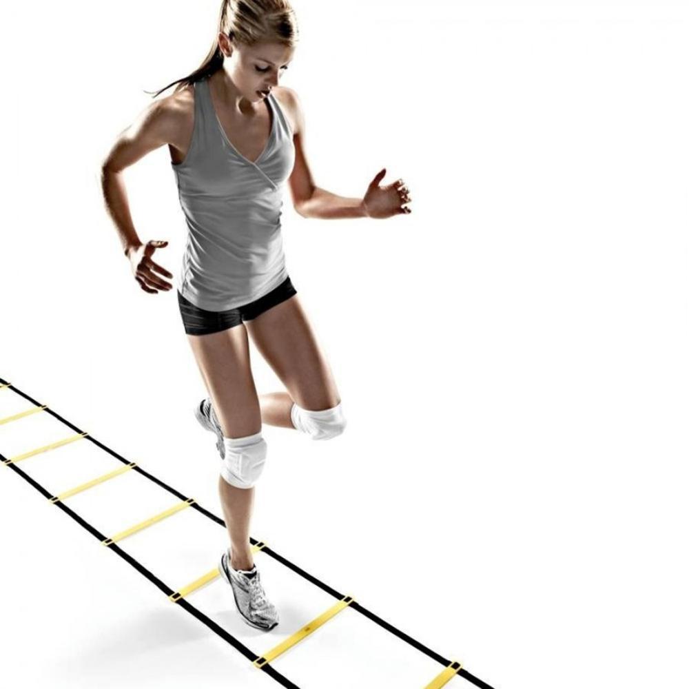 إن هذا السلم الذي يوضع على الأرض سهل الحمل، ومثالي لتختبر نفسك عند القيام بأداء تمارين صعبة والتي يحتاج بعضها إلى لياقة عالية في القدمين، حيث باستطاعتك أيضًا أن تمارس بنفس السلم بعض تمارين الضغط كالتنقل بين مربع والآخر، ولكن تاكدي أنك تستخدمين جهاز رصد معدل ضربات القلب لمعرفة كمية السعرات الحرارية التي يتم حرقها في التمرين.