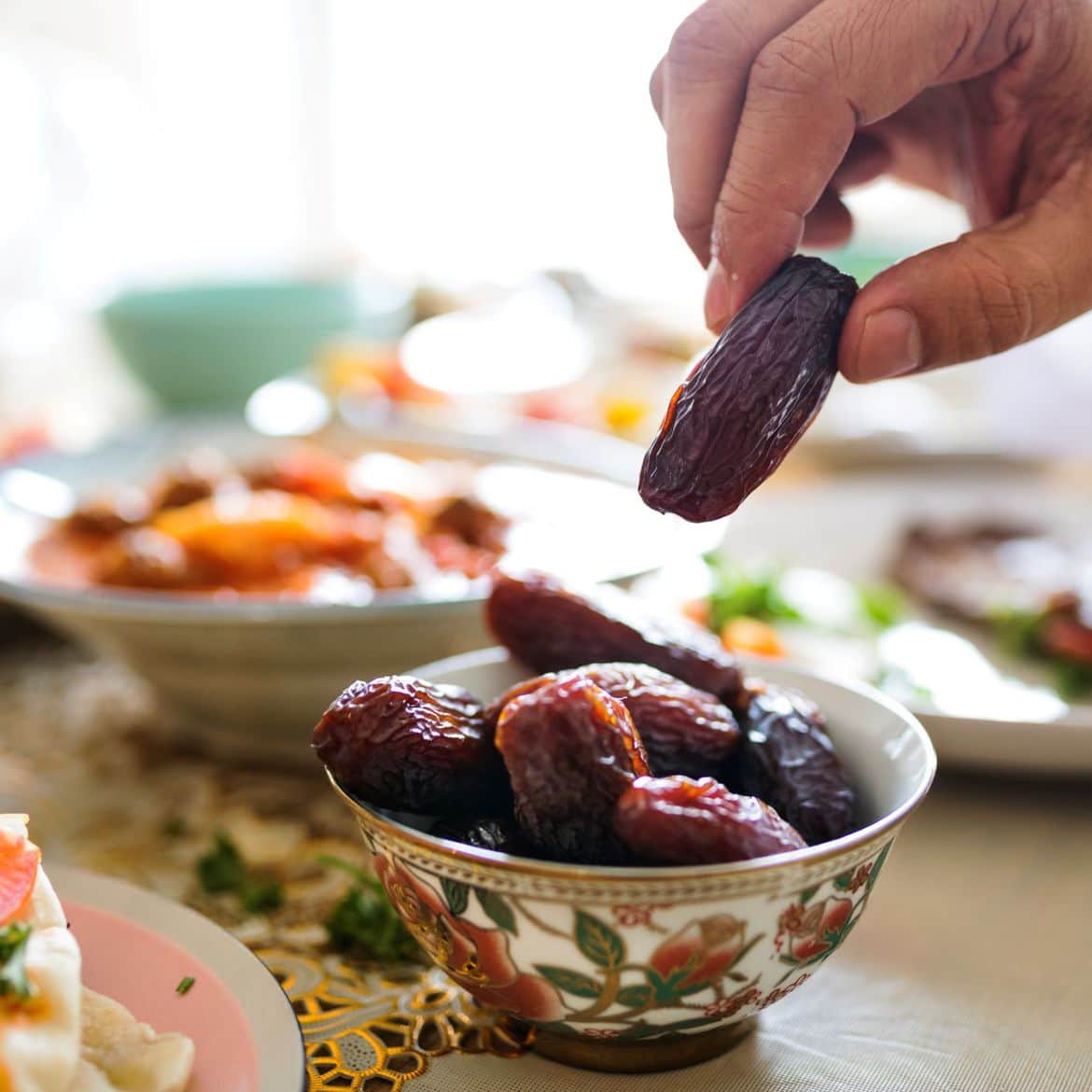 - الحرص علي تناول كمية معتدلة من الطعام عند كسر الصيام، والبدء قبل كل شيء ببعض حبات التمر، وكوب من الماء، ومن ثم تناول وجبة خفيفة.